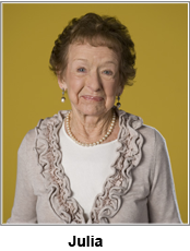- Julia is played by Mary Kay Dearing from San Diego, CA